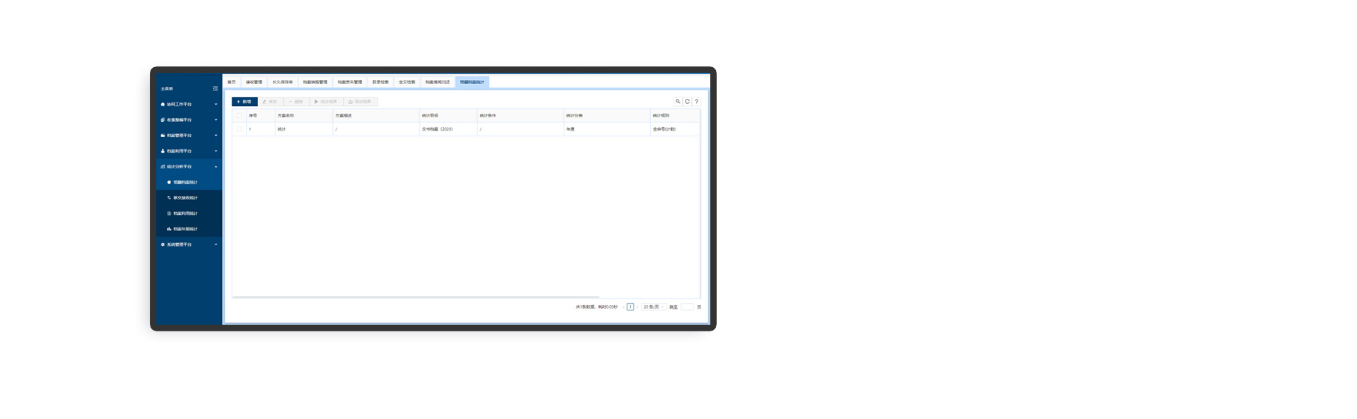 對長久保存庫中的檔案進行多維度的統(tǒng)計,可以跨全宗、檔案門類統(tǒng)計